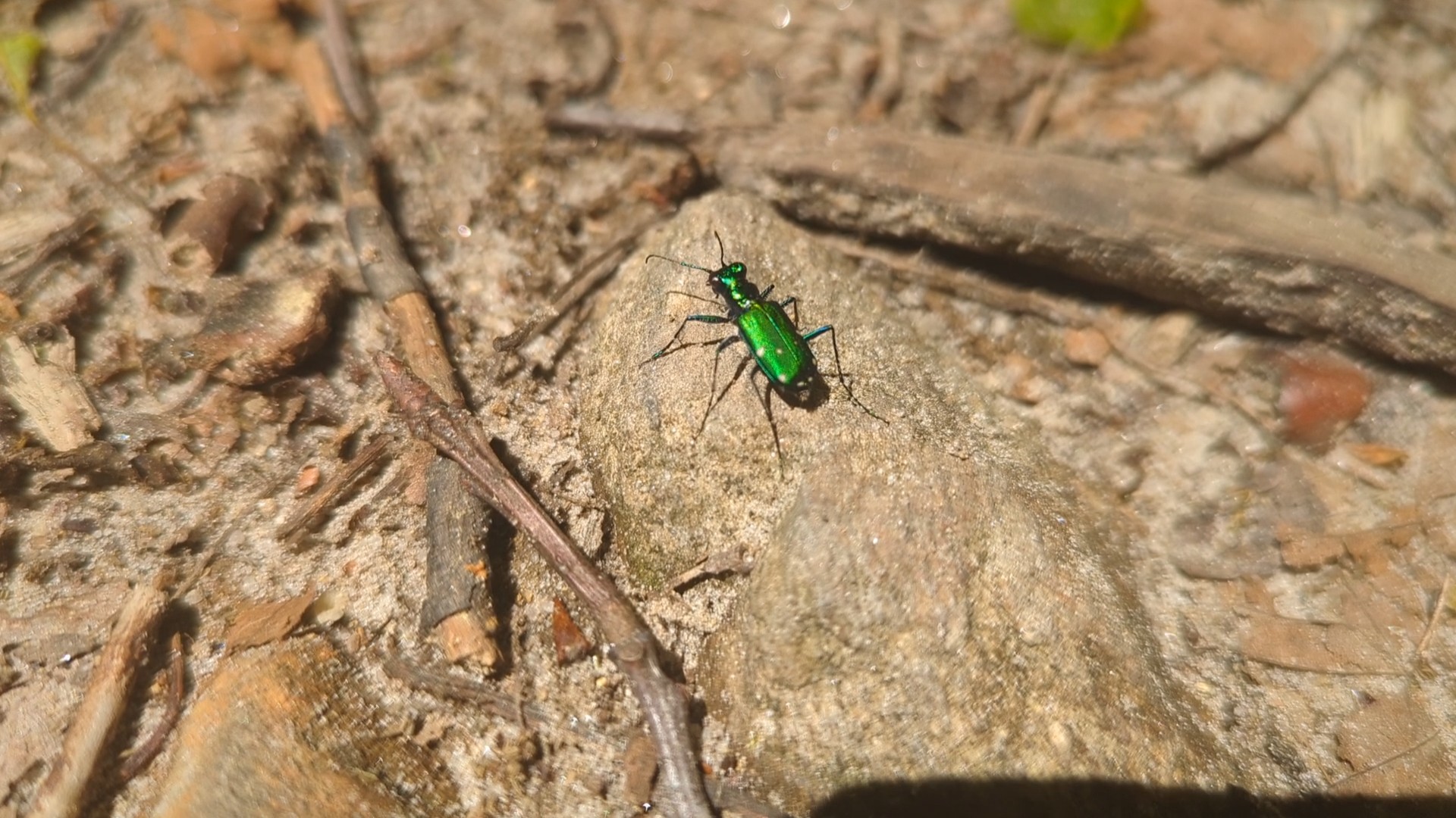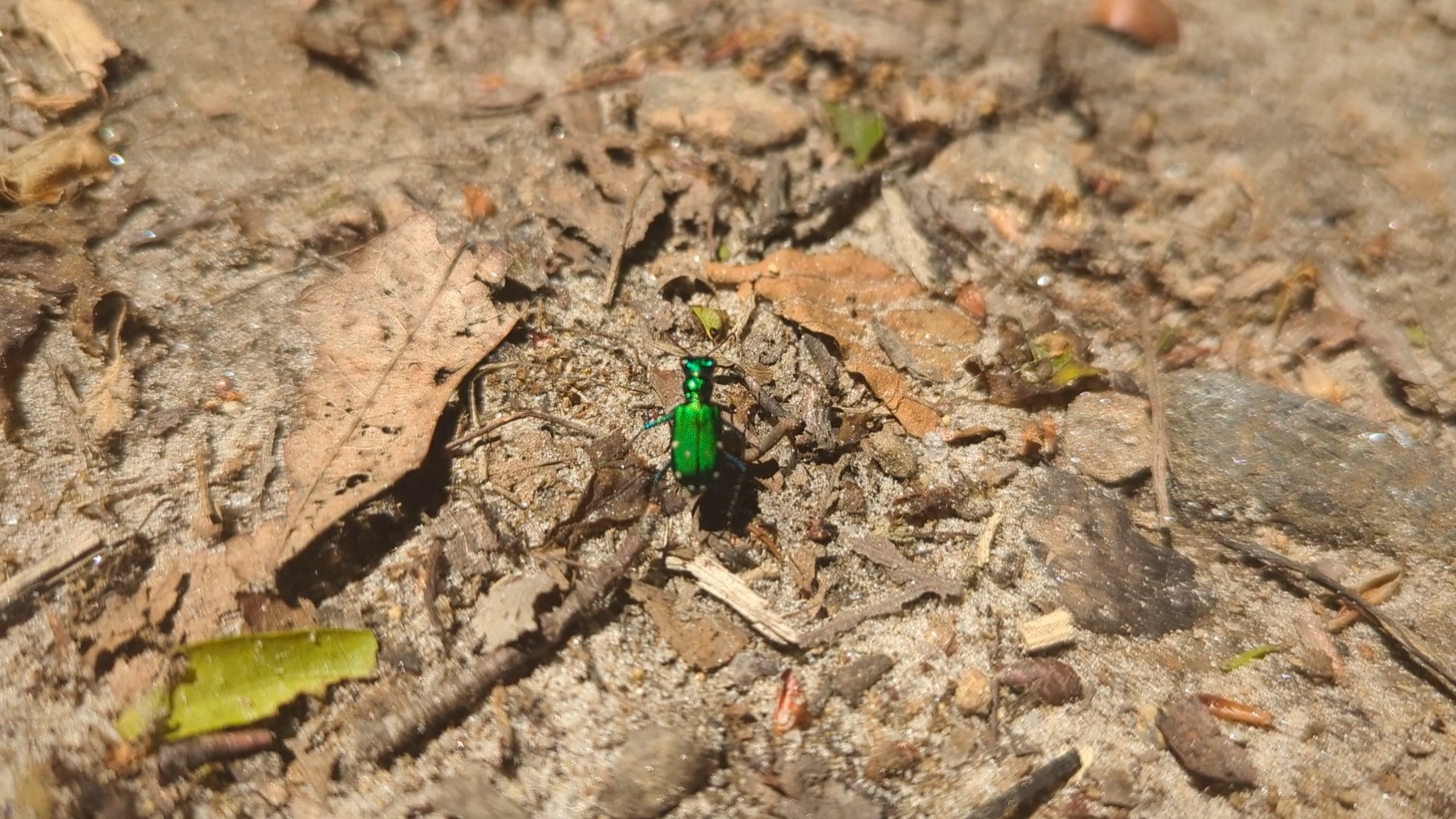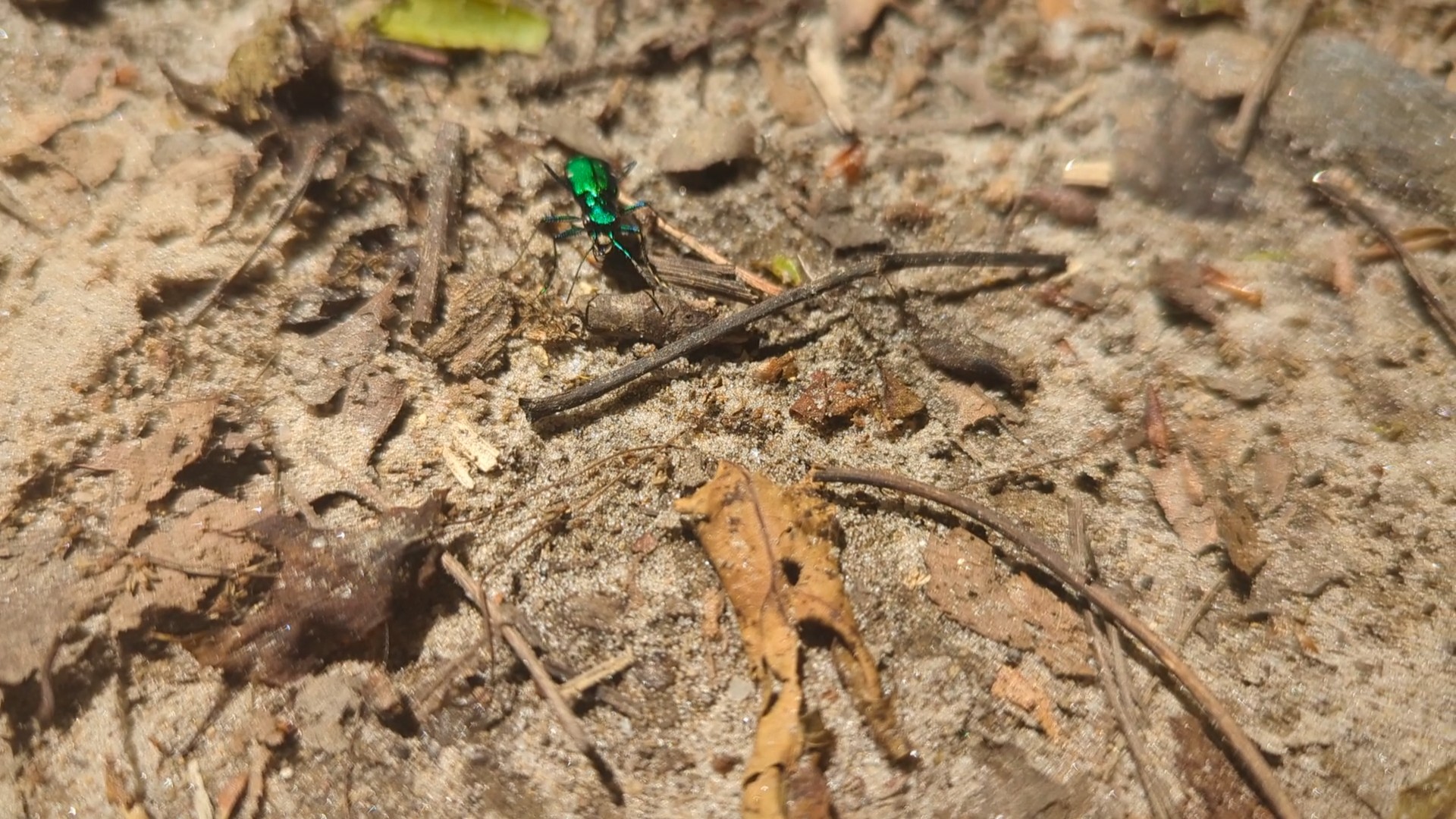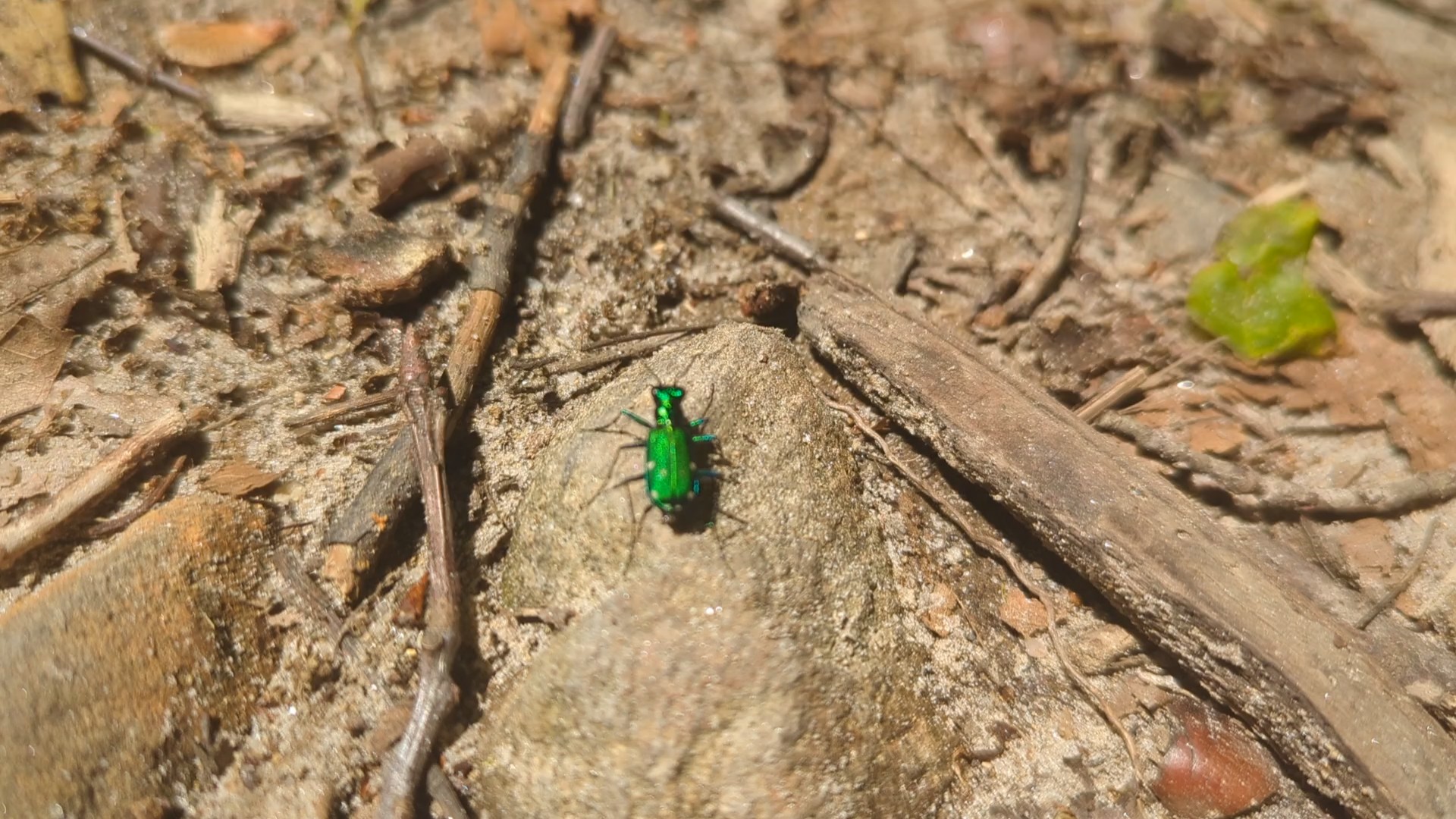 The larvae of the Three-striped Potato Beetle commonly cause damage to garden plants such as tomatillos. The larvae cover themselves with their excrement, likely as camouflage and a deterrent to predators.