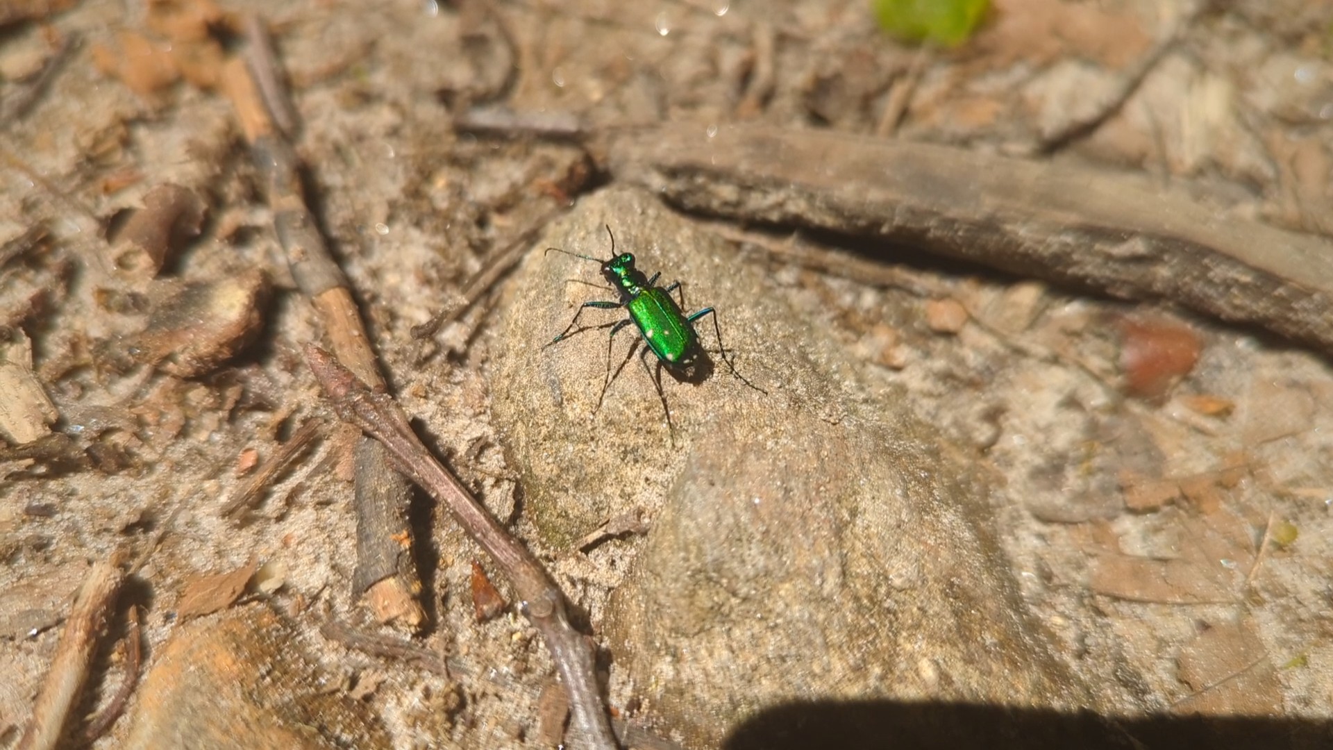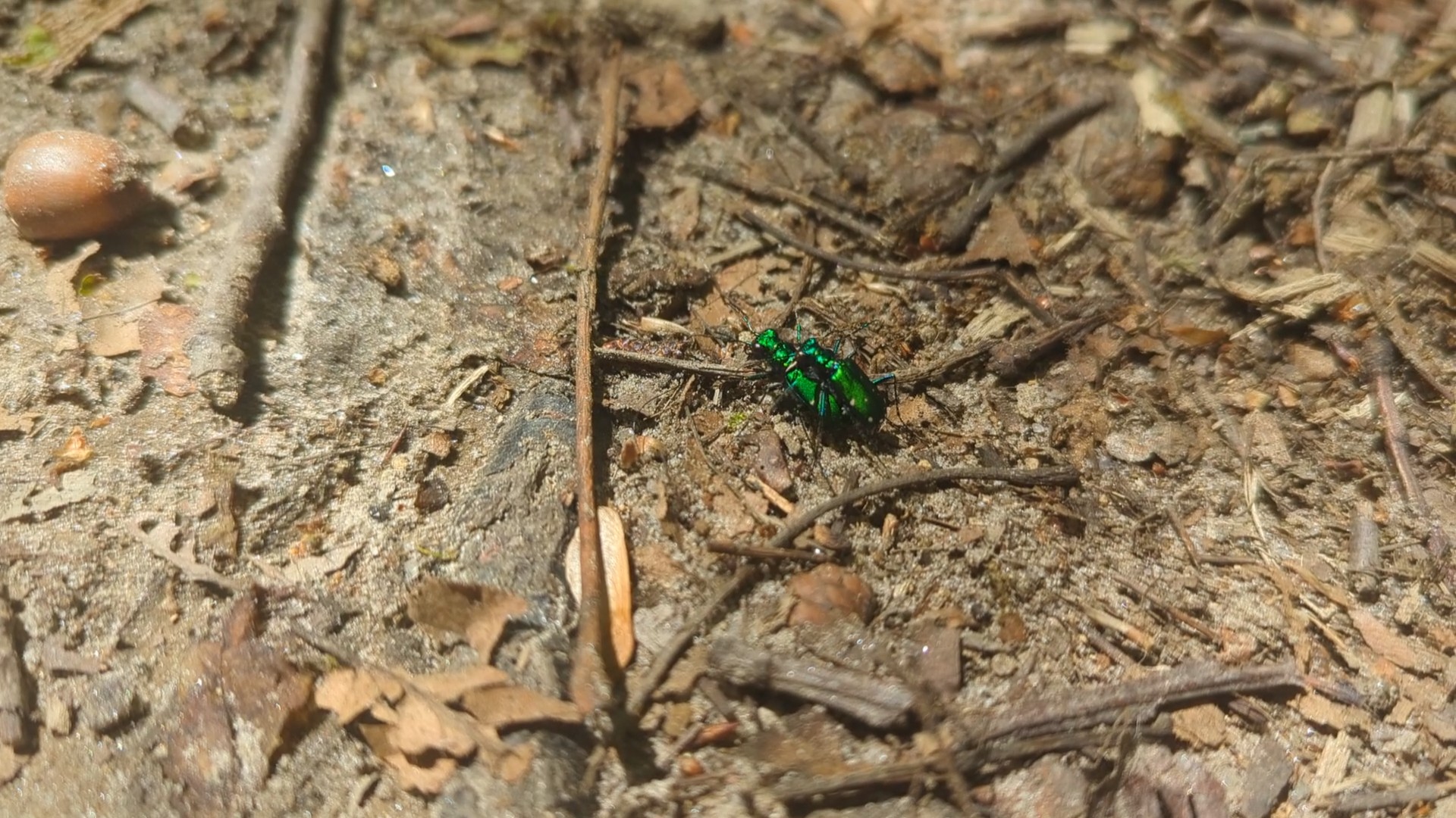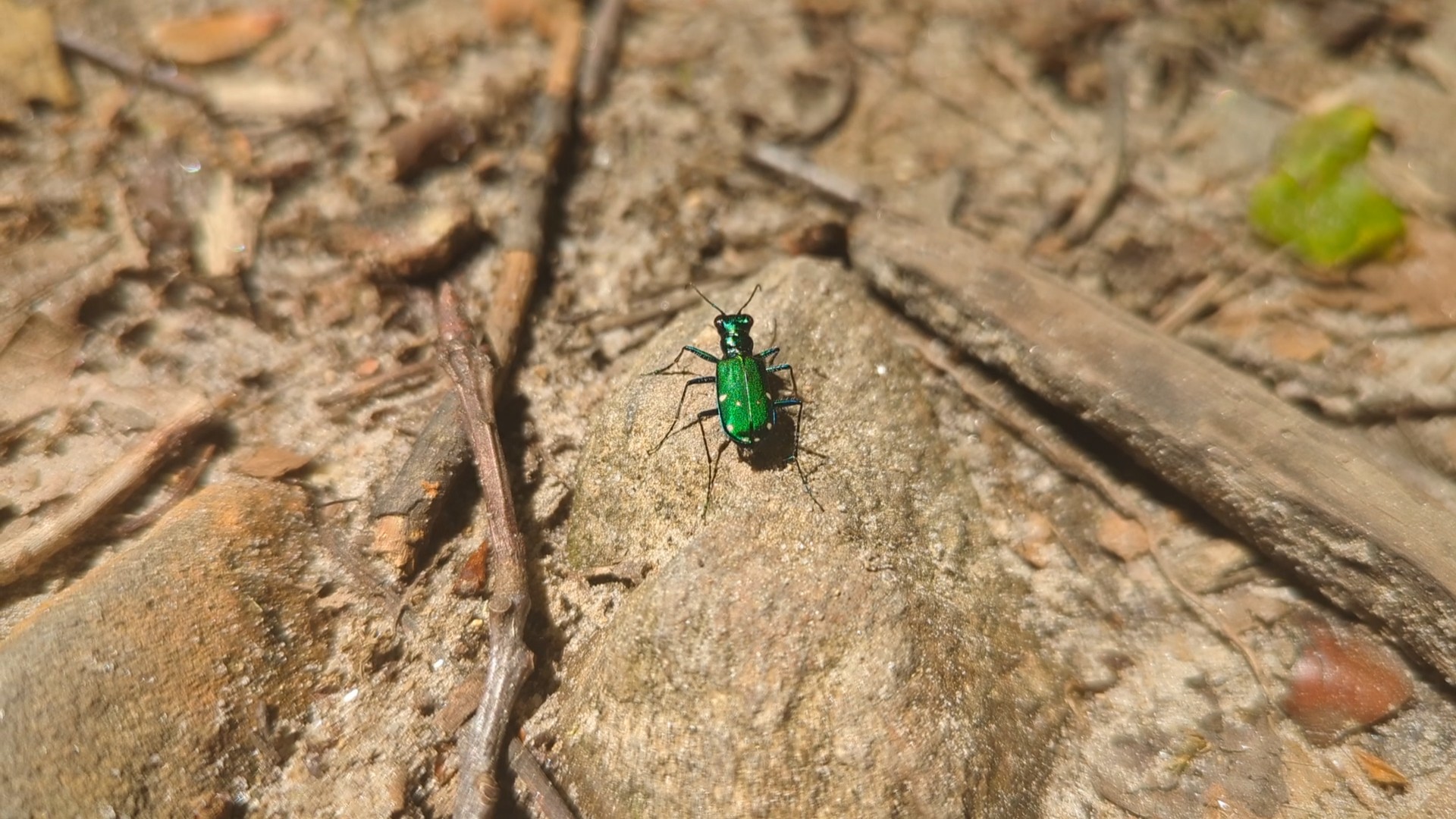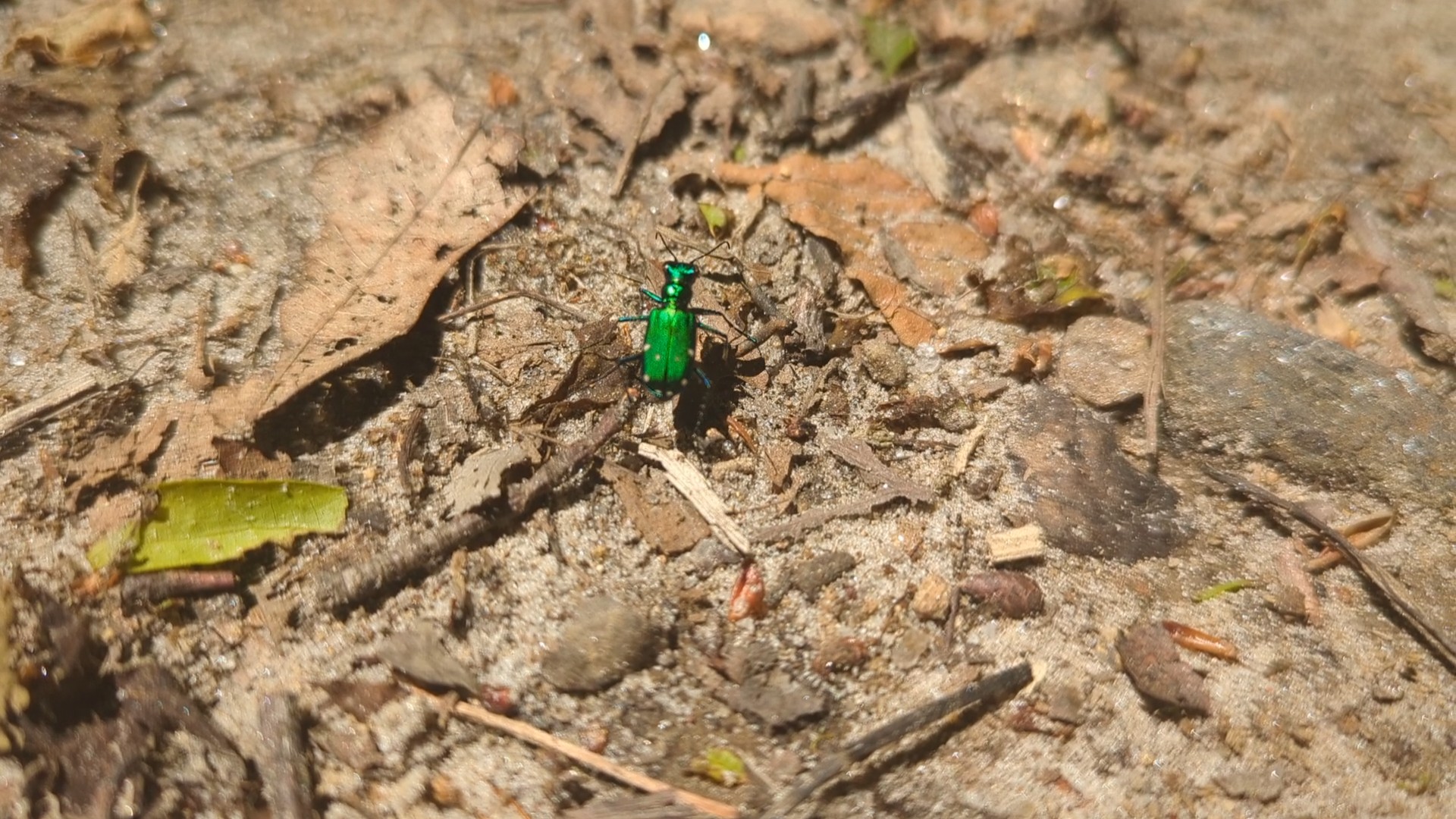 The larvae of the Three-striped Potato Beetle commonly cause damage to garden plants such as tomatillos. The larvae cover themselves with their excrement, likely as camouflage and a deterrent to predators.