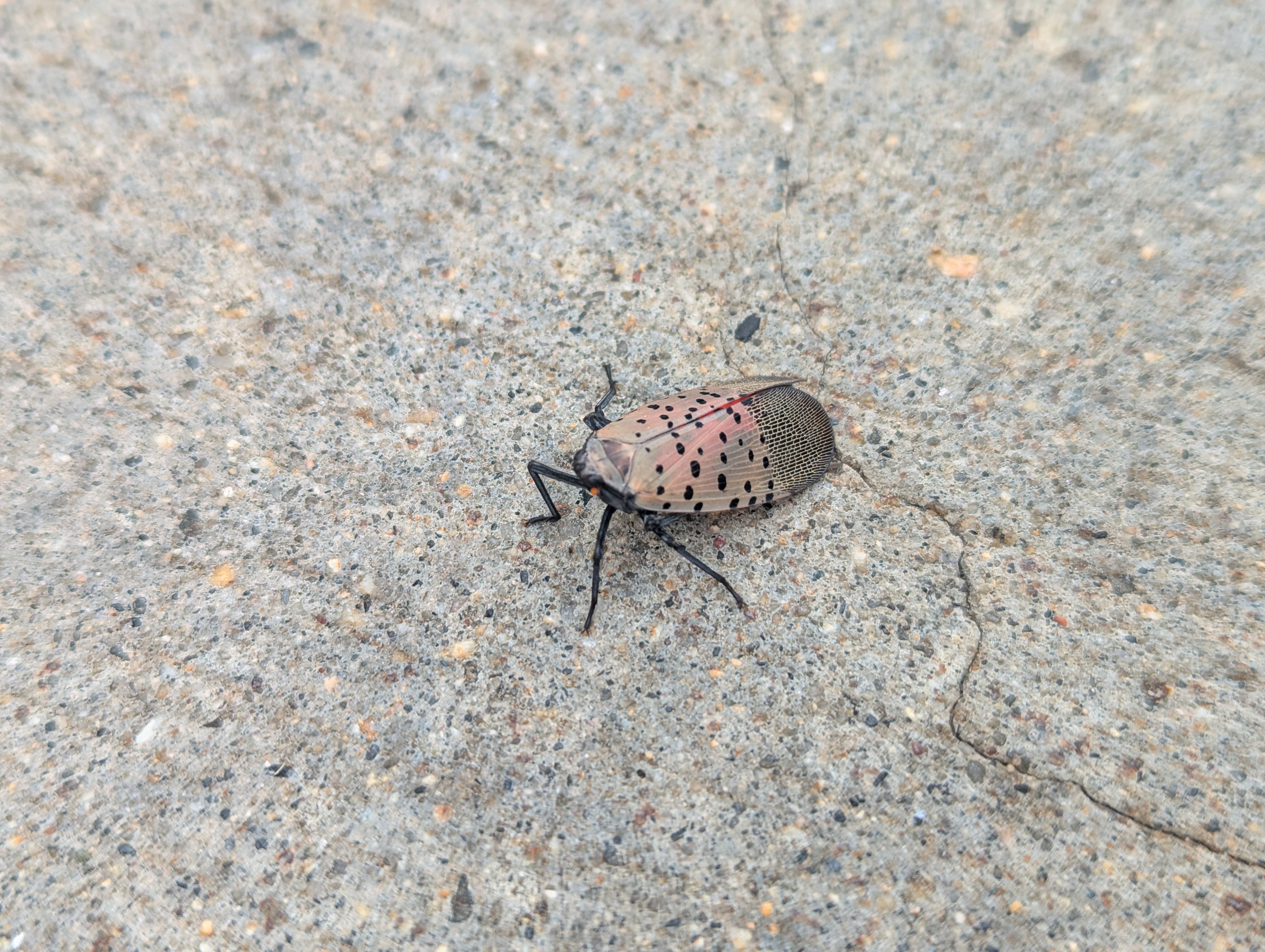 Spotted lanternflys observed in Springfield Massachusetts in September 2025, and Hampden Massachusetts in October 2025.